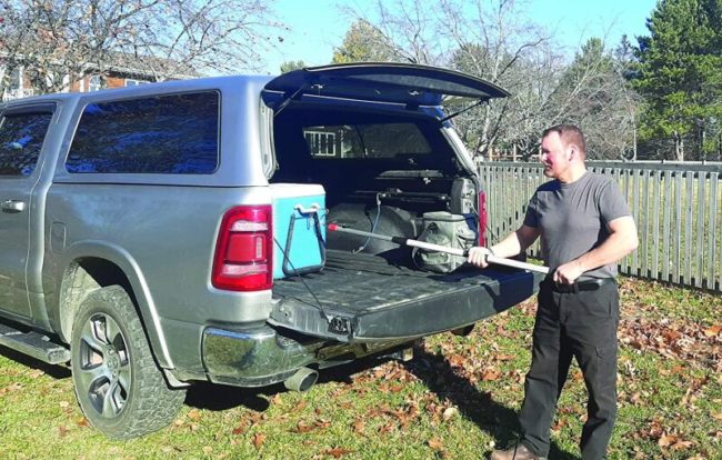 Truck AccessoriesSlim Reacher Telescope Pole SLIM REACHER TELESCOPING POLE The Ultimate Reaching Tool Extends from 48″ to 80″ Lightweight, weighs less than 2 lbs Stainless steel hook Quick release button Super strong Fiberglass and Aluminum construction Waterproof LED light Quick access mounting clips Pull or push with force up to 100lbs! You can reach over…