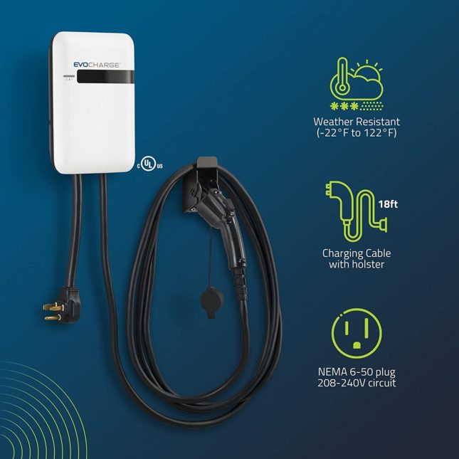 EVOCHARGE EVSE, Level 2 Electric Vehicle Charging Station with 18 ft Cable, 240V 32A, UL Listed EV Charger, NEMA 6-50 plug, Indoor/Outdoor Rated, Charge up to 8X Faster Than Level 1
