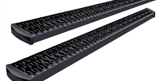 LUVERNE Grip Step™ 7 Inch running boards. These roughneck boards feature a unique, expanded metal tread for superior traction in any type of weather, and a 7 Inch x 2-1/2 Inch rectangular design to offer reliable footing without any of the nonsense. They are built from a 5052-H32 aluminum alloy, making them exceptionally strong and putting rust in its place. Grip Steps™ are also simple to install, using stainless steel fasteners for a no-drill, custom fit.