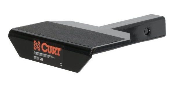 The trailer hitch step is a truck accessory that attaches to the rear bumper trailer hitch. It protects the rear bumper by giving passengers a step to step up to the truck bed or cargo hold without having to step on the rear bumper itself.