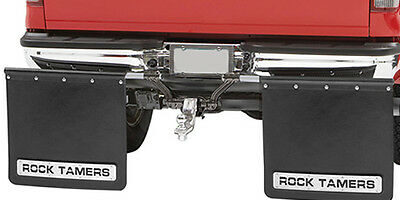Mud Flap; Cut-To-Fit 24 x 24 Inch; 2 Inch Receiver Mount System With 2 Mud Flaps; Flat; Rock Tamers; Matte Black Flaps/ Black Adjustment Arms and Hub With Stainless Steel Rock Tamer Trim Plates; Fits Most Full Size Pick Ups And SUVs